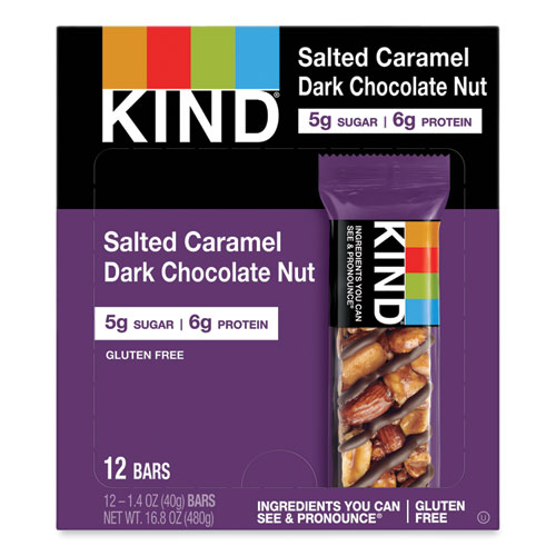 Nuts and Spices Bar, Salted Caramel and Dark Chocolate Nut, 1.4 oz Bar, 12/Pack